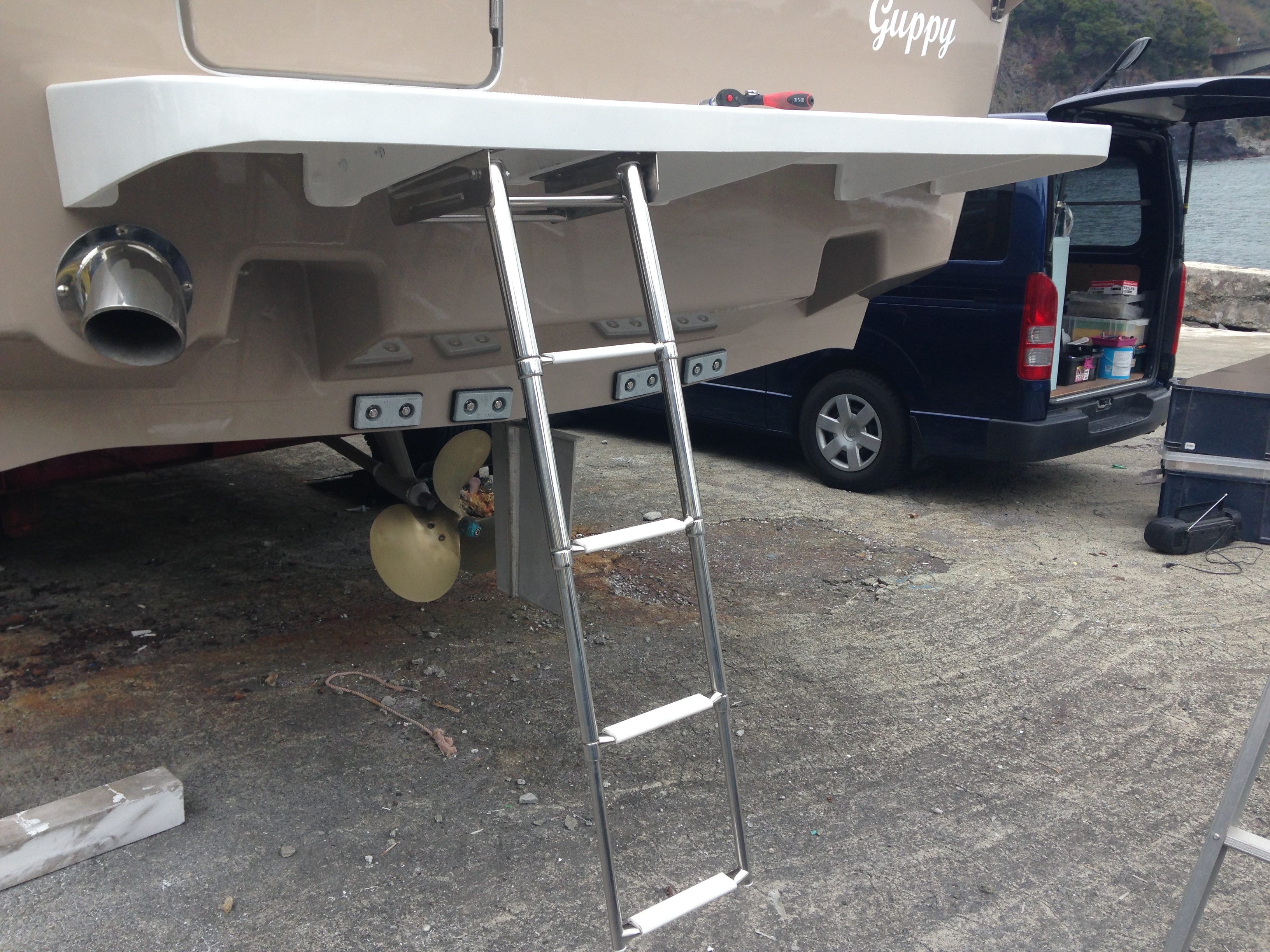 - トランサムステップ(現地オリジナル艤装)&ラダー(プラスチモ製)