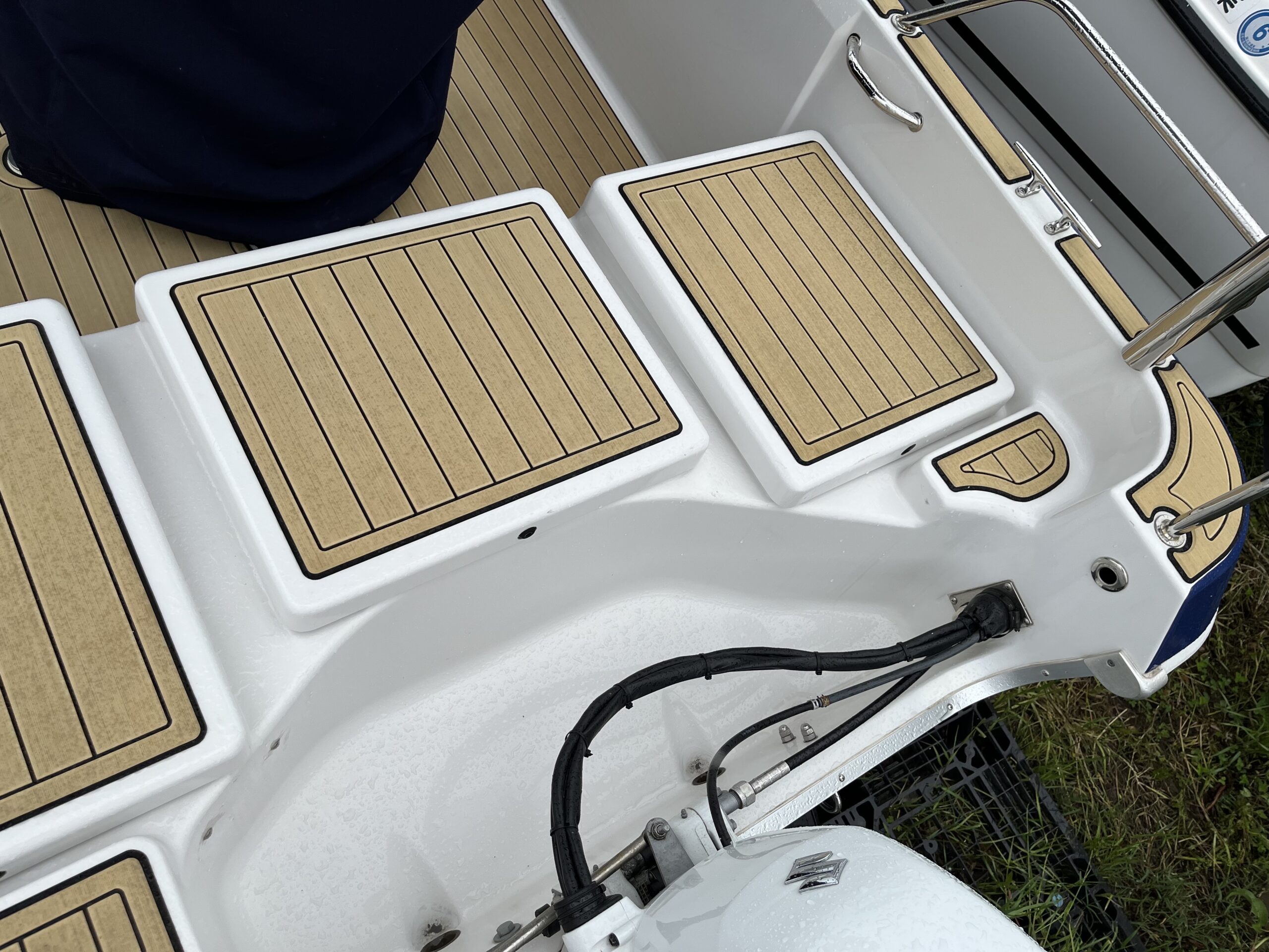 海の上が似合うネイビーの艇体、上品なチークマット「Sea Deck」で、海の上の時間がやさしく柔らかくなります。