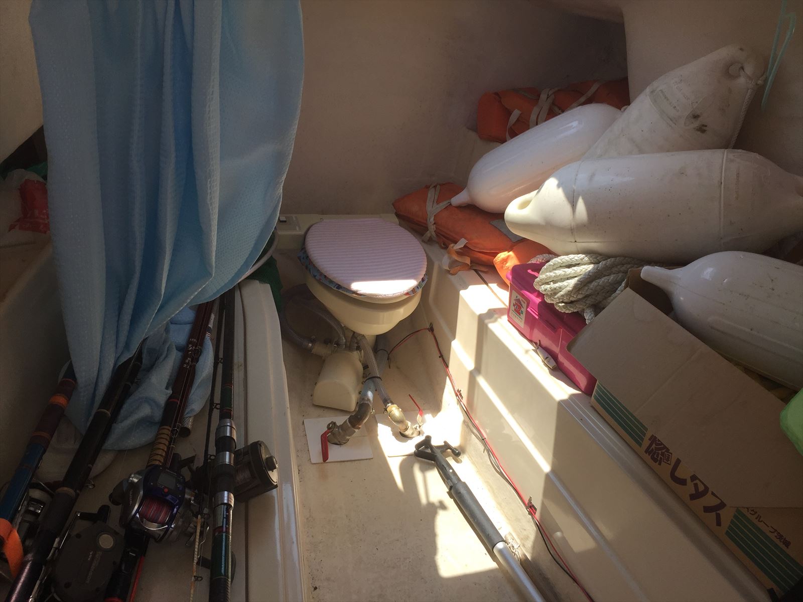 - キャビン内電動トイレ(釣具等私物は撤去)