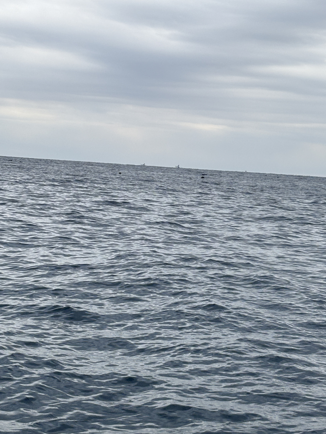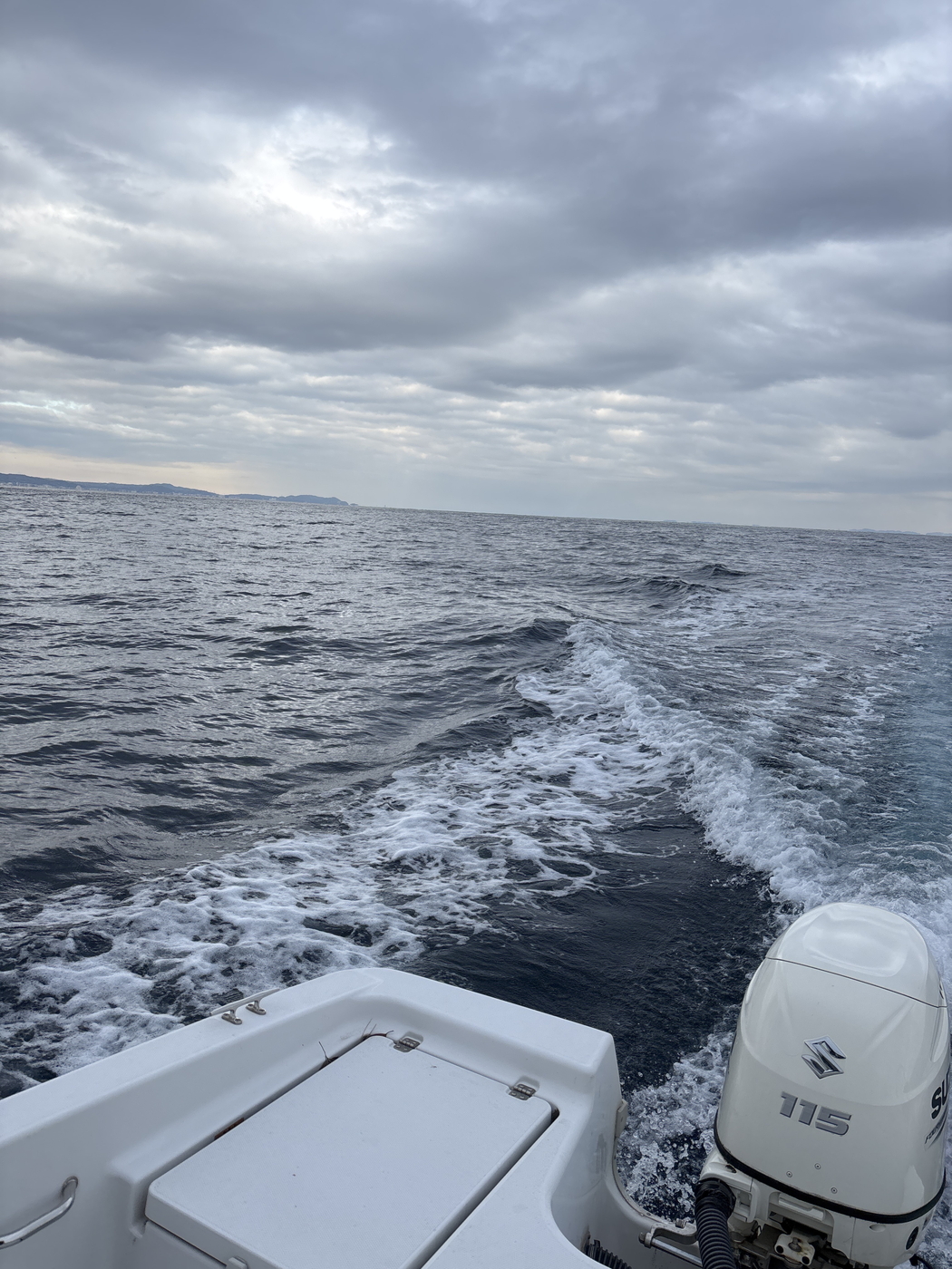 岡ちゃんの操船で沖に出ていくと、彼が急に「なんか、シュノーケルが見えるような???」