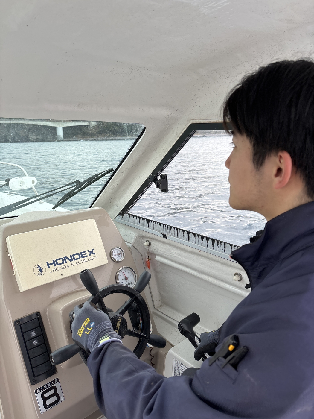 作業のための操船なので短時間だし、画面見ると魚影探しちゃいそうなので、魚探はOFFのままでした。