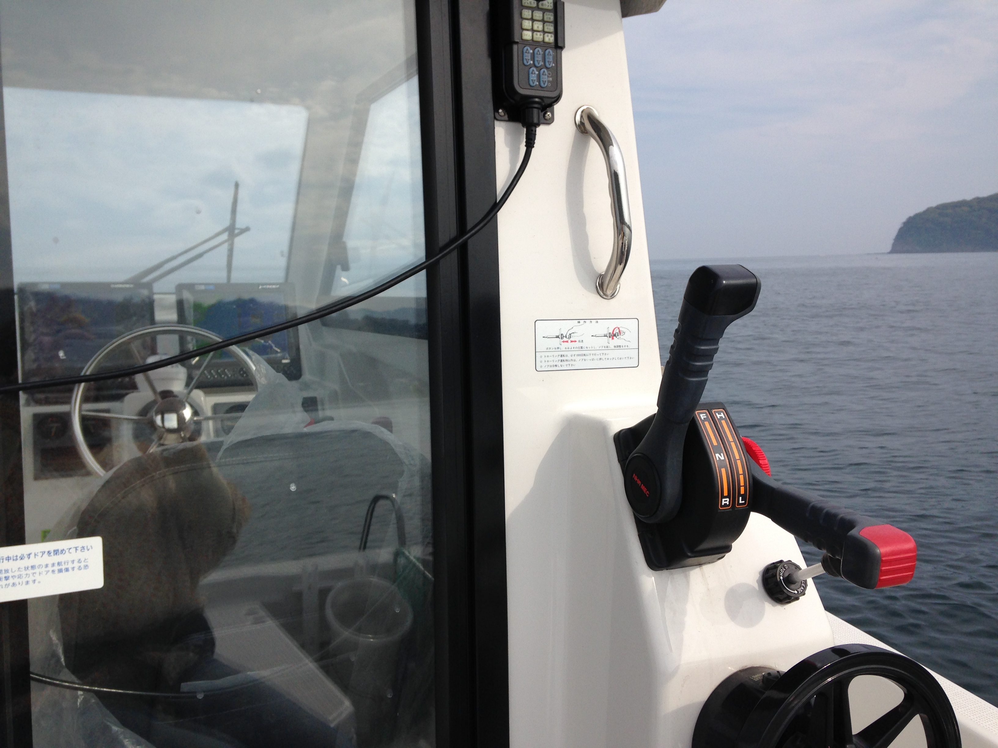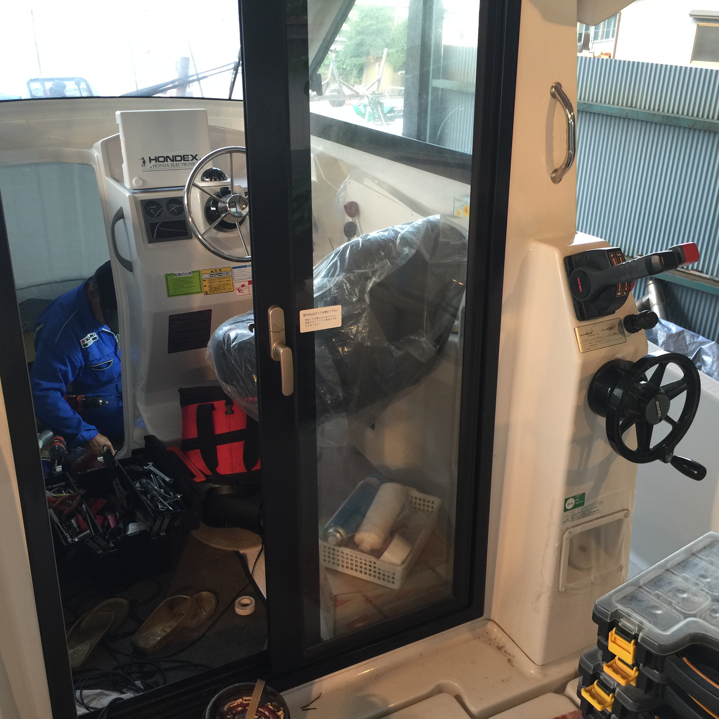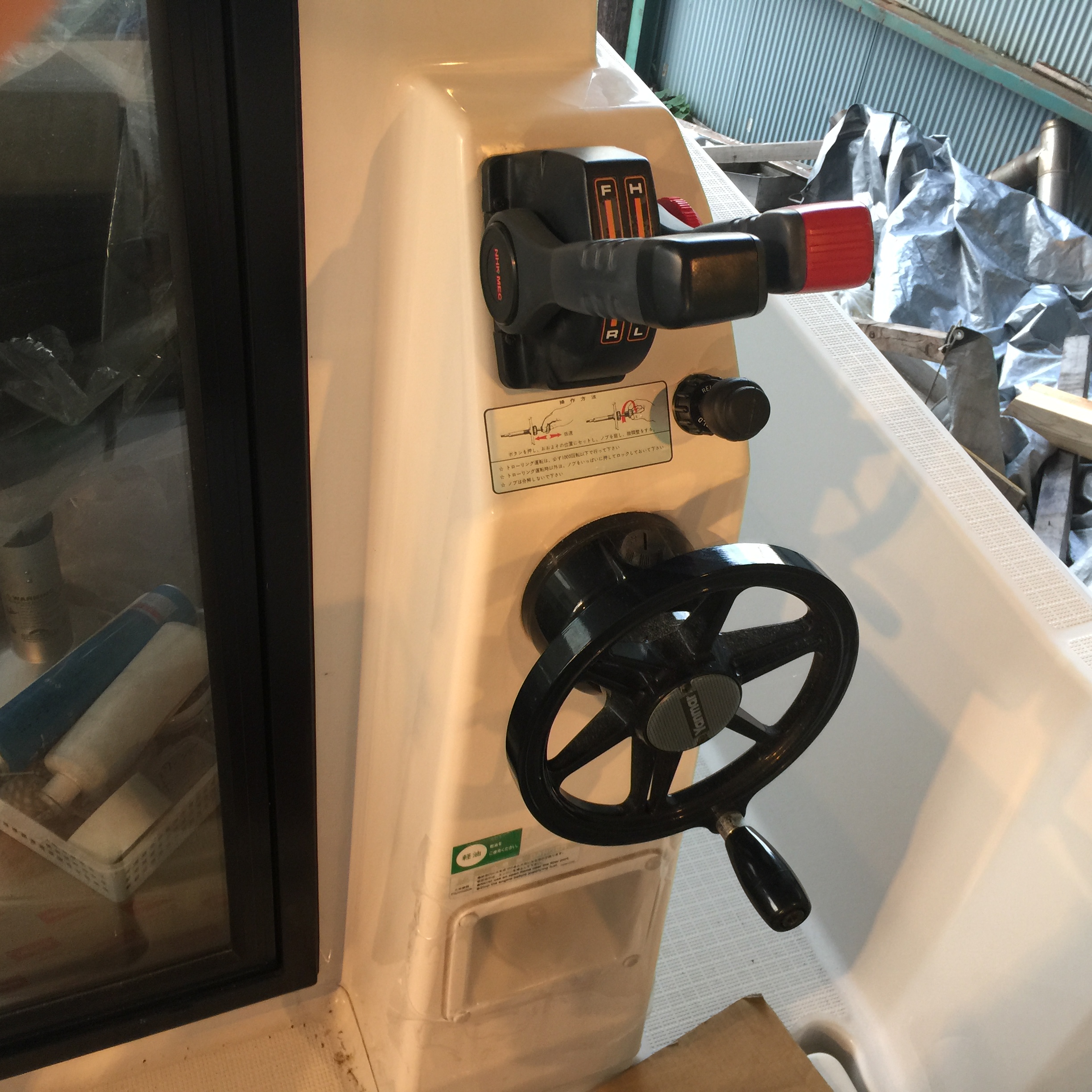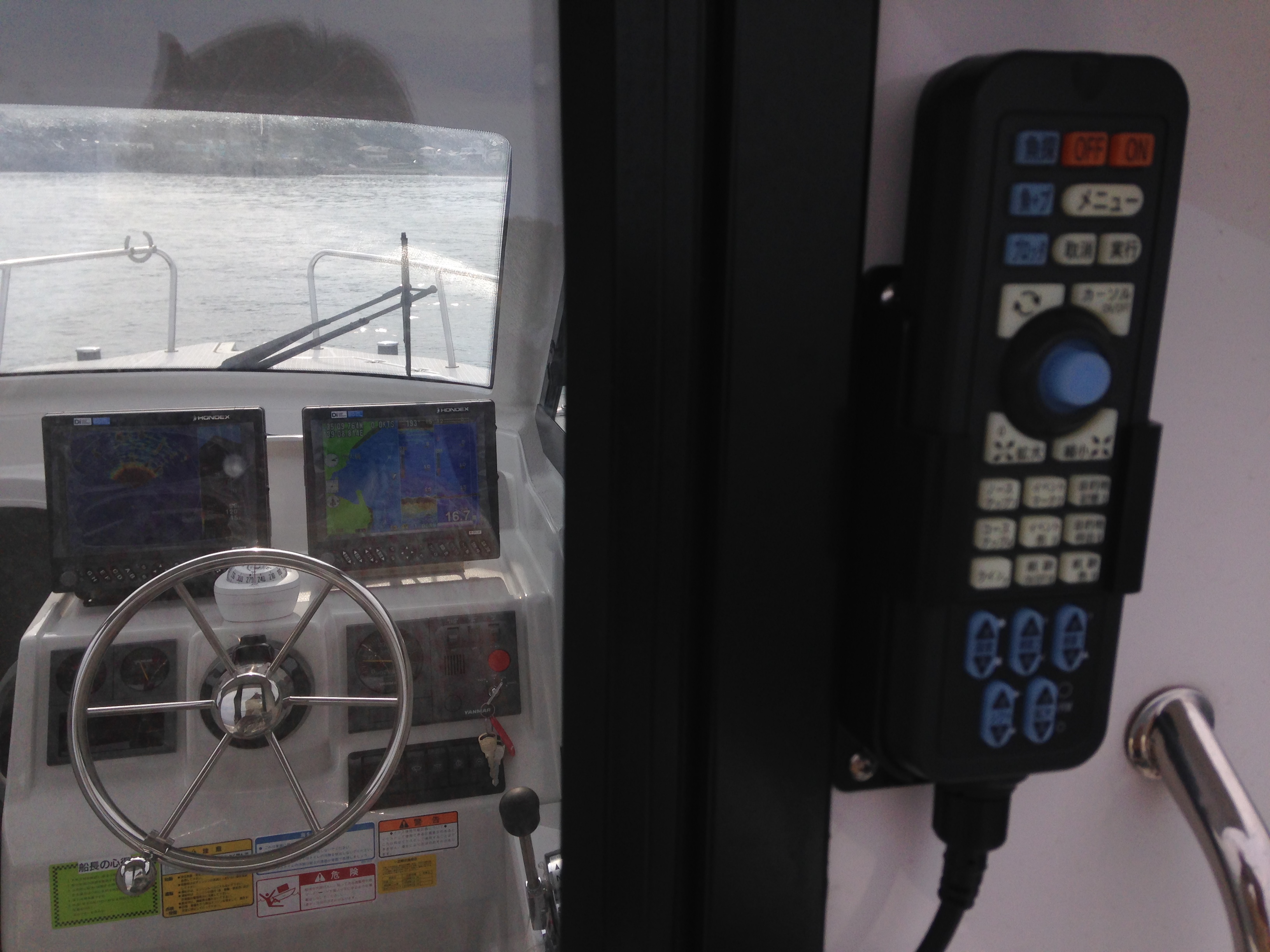 - B艇の2か所操舵。GPS魚探用リモコン設置