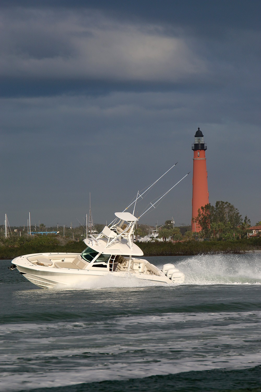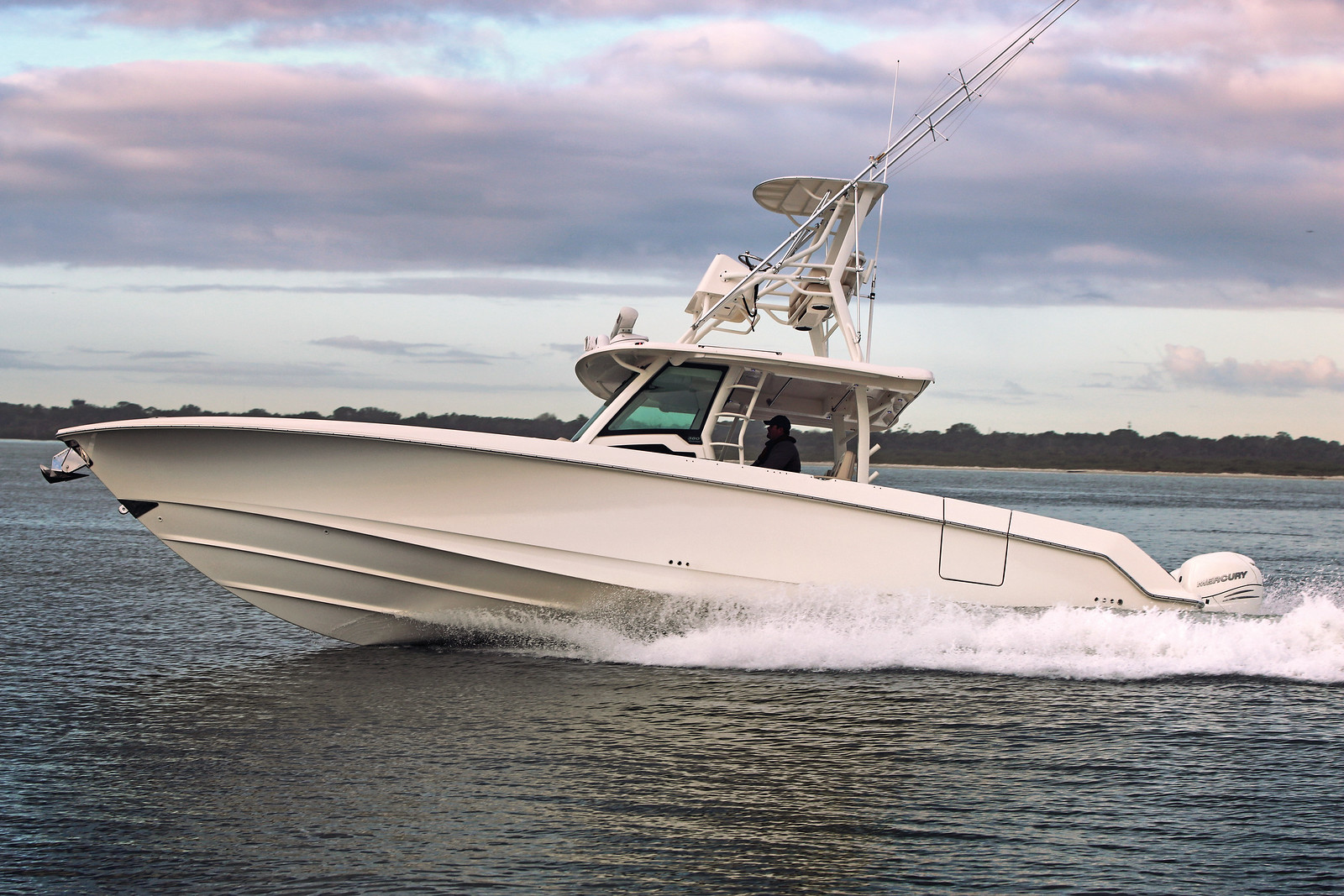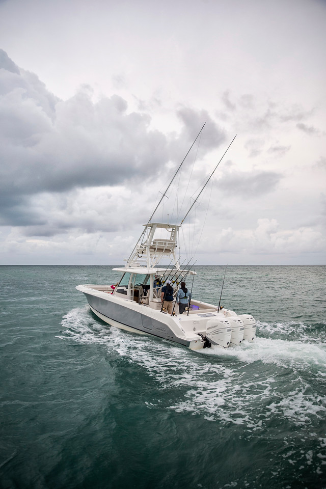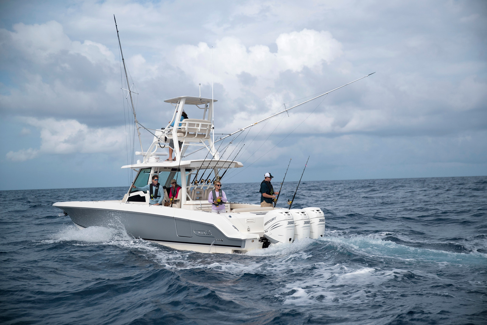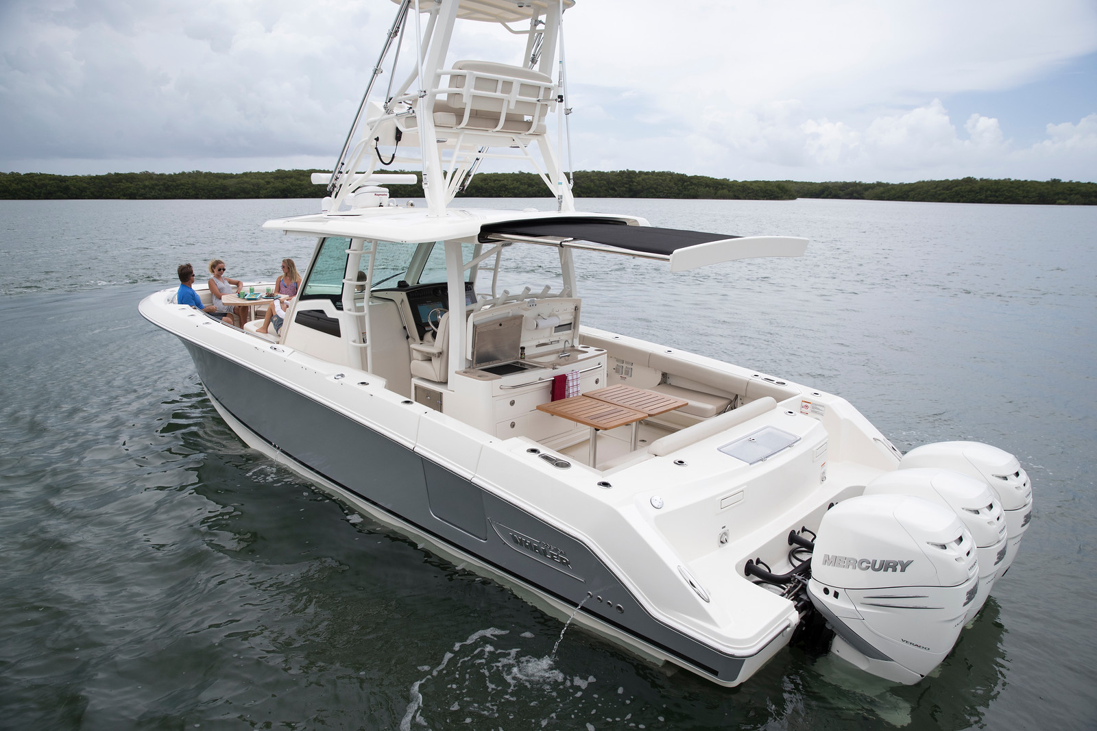 3基掛けのマーキュリー船外機と艇体との連携は、優れた効率とテクノロジーを供えています。