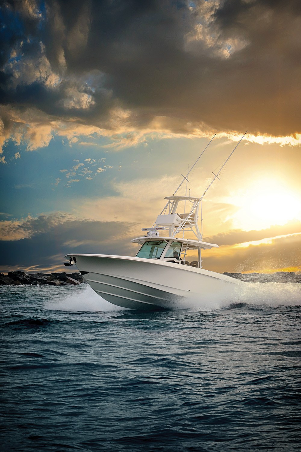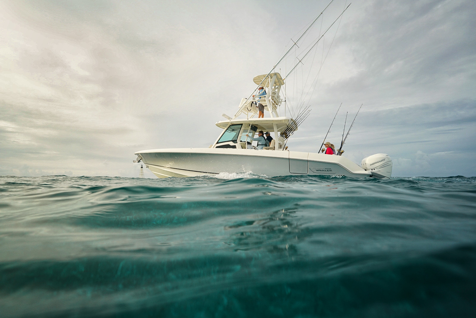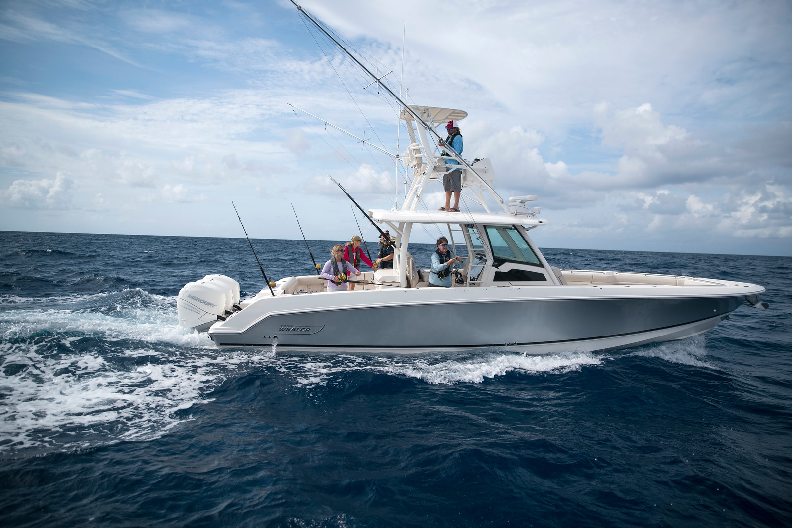 ボストンホエラーの精密設計された艇体は、オフショアの荒波も安心して乗り切る性能を備えています。