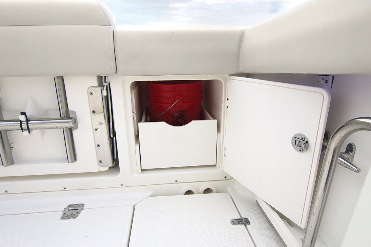 • 密閉式ストレージ アフト対面式シート下 ドレーン付き(オプションのライブウエルへアップグレード可能)