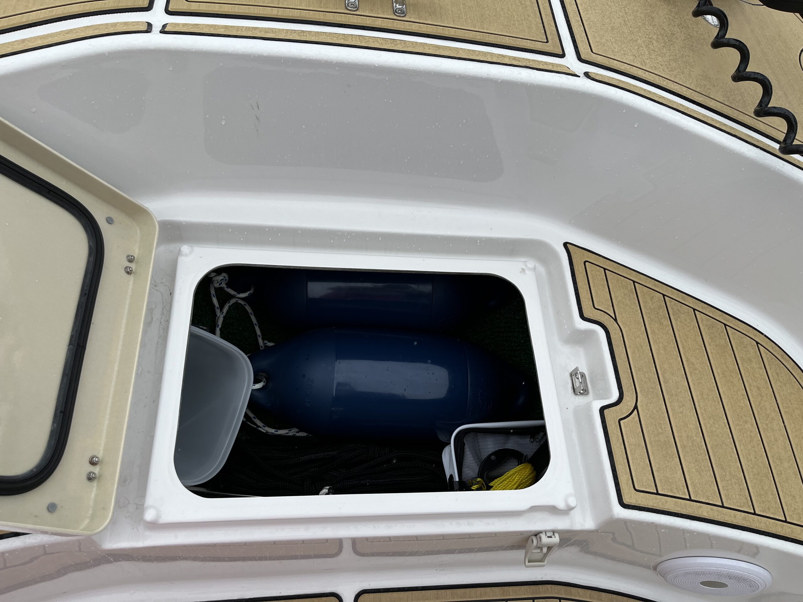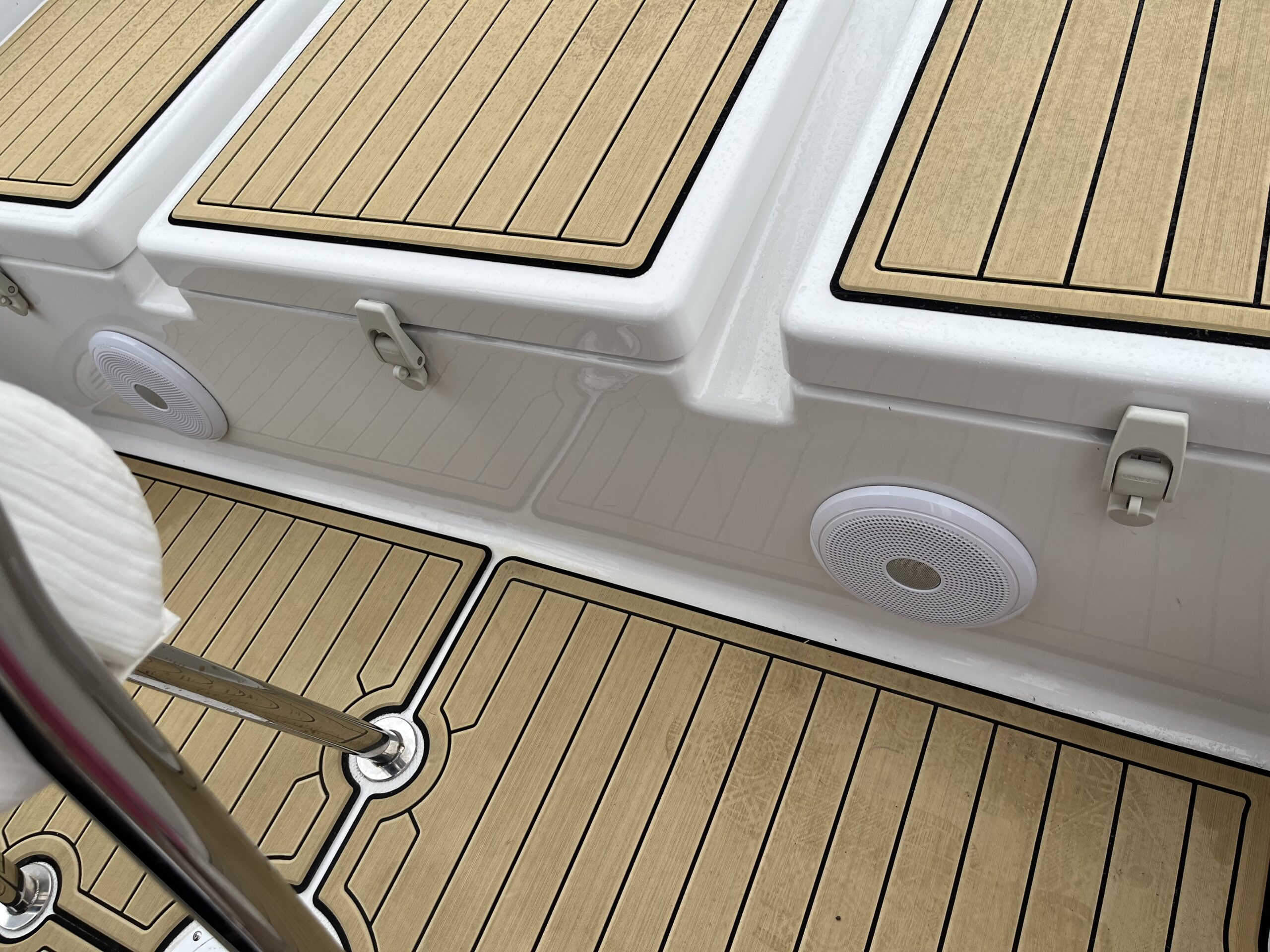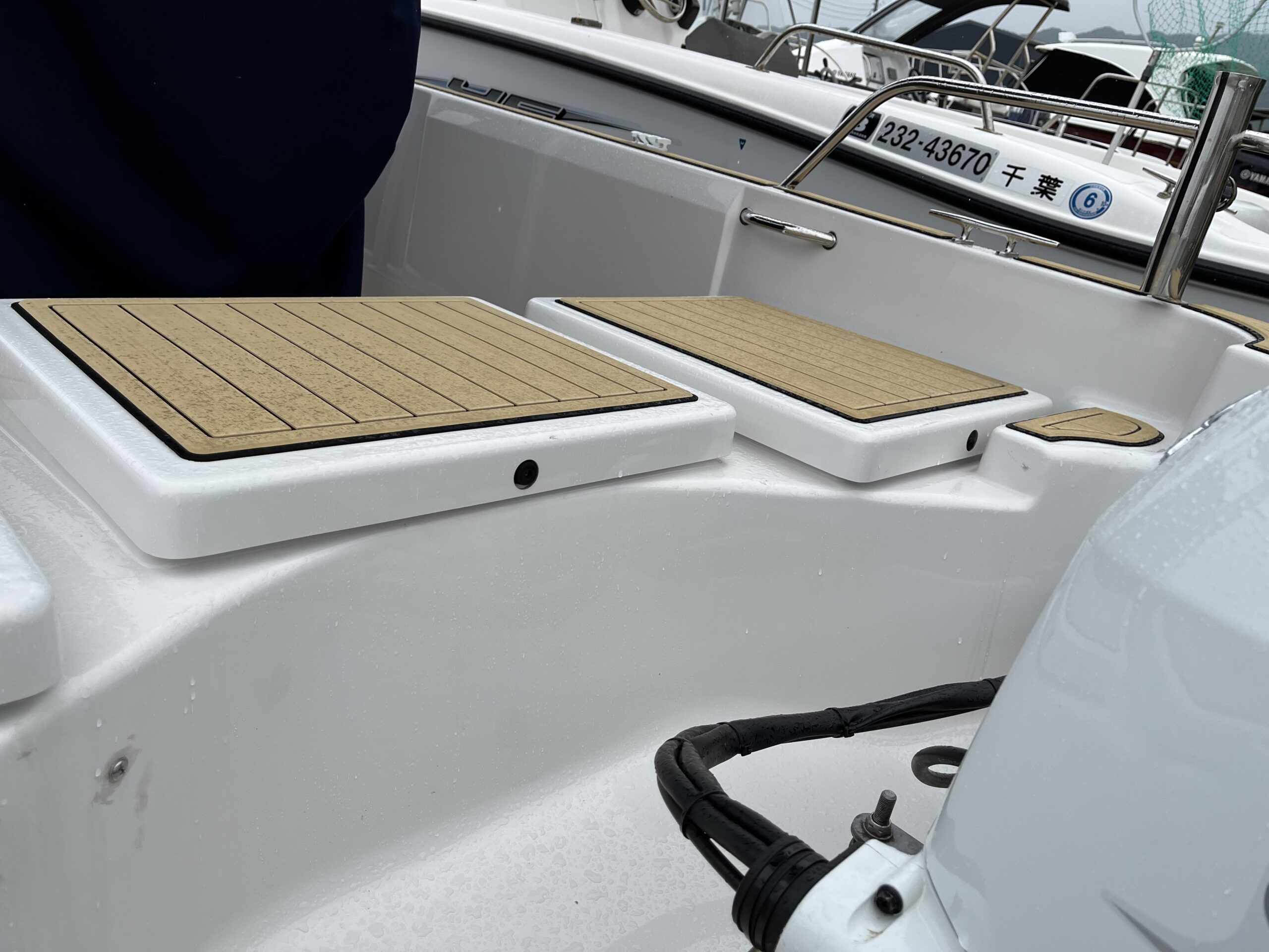 海の上が似合うネイビーの艇体、上品なチークマット「Sea Deck」で、海の上の時間がやさしく柔らかくなります。