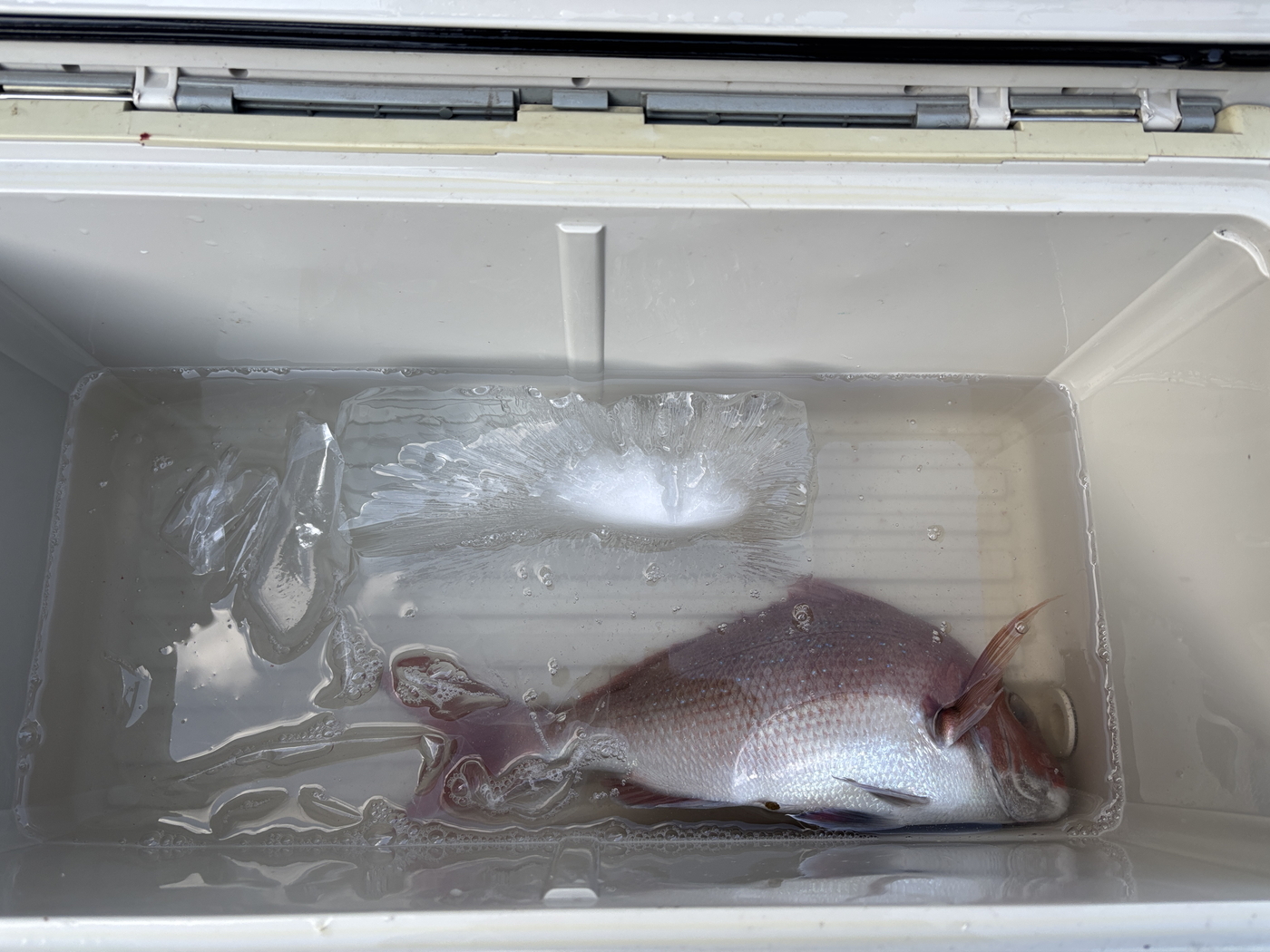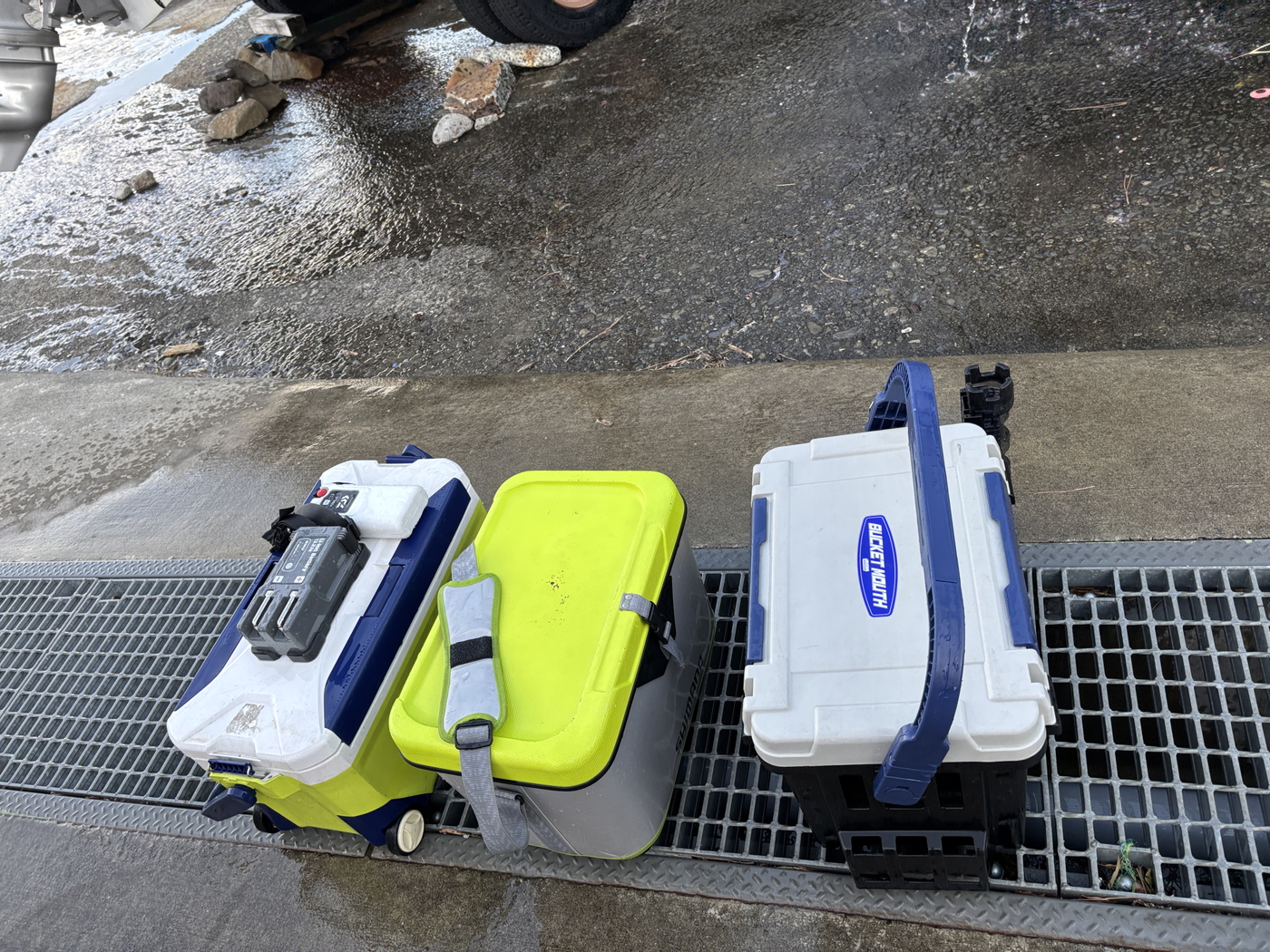 クーラーボックスを降ろしていたら、たまたま通りがかったご家族にも、クーラーを見ていただきました。