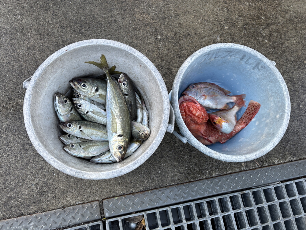 アジがいいサイズがそろっていて、しかも脱走予備軍的に元気でした。