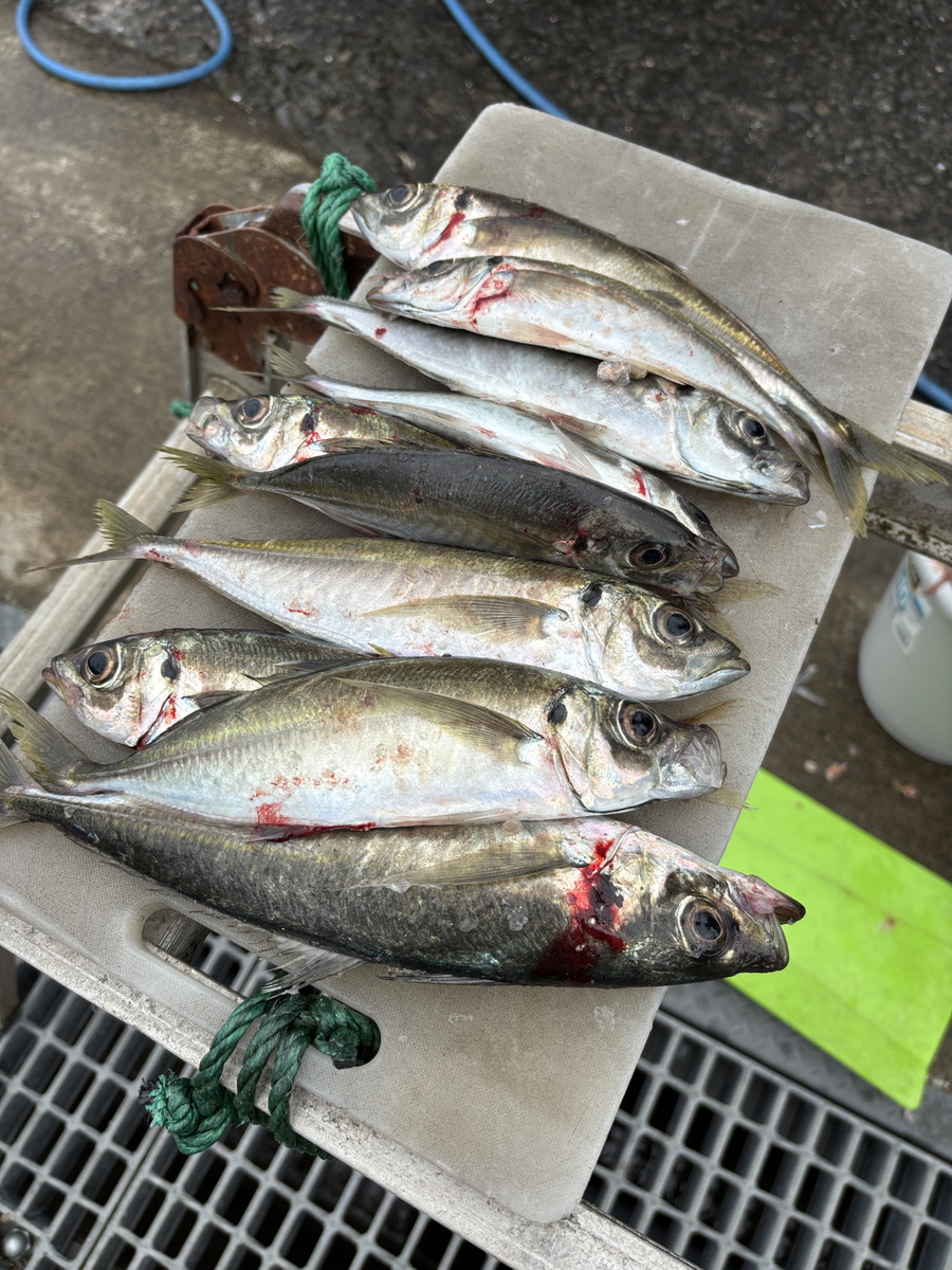 今日は小ぶりなのが多かったとのことですが、久々の釣りだし、風吹く前にアジ釣れたし。よいよね?