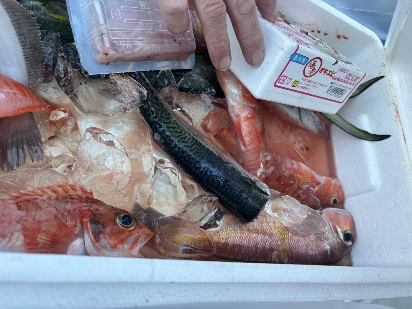 同乗の日本料理大将がきれいに捌いて氷詰め。