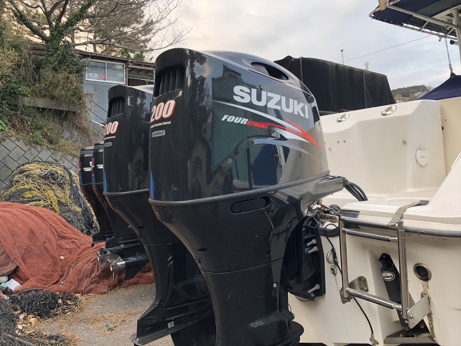 ヤマハV6F225 ×2基掛けから、直列4気筒のスズキDF200APへ載せ替えた事例です。