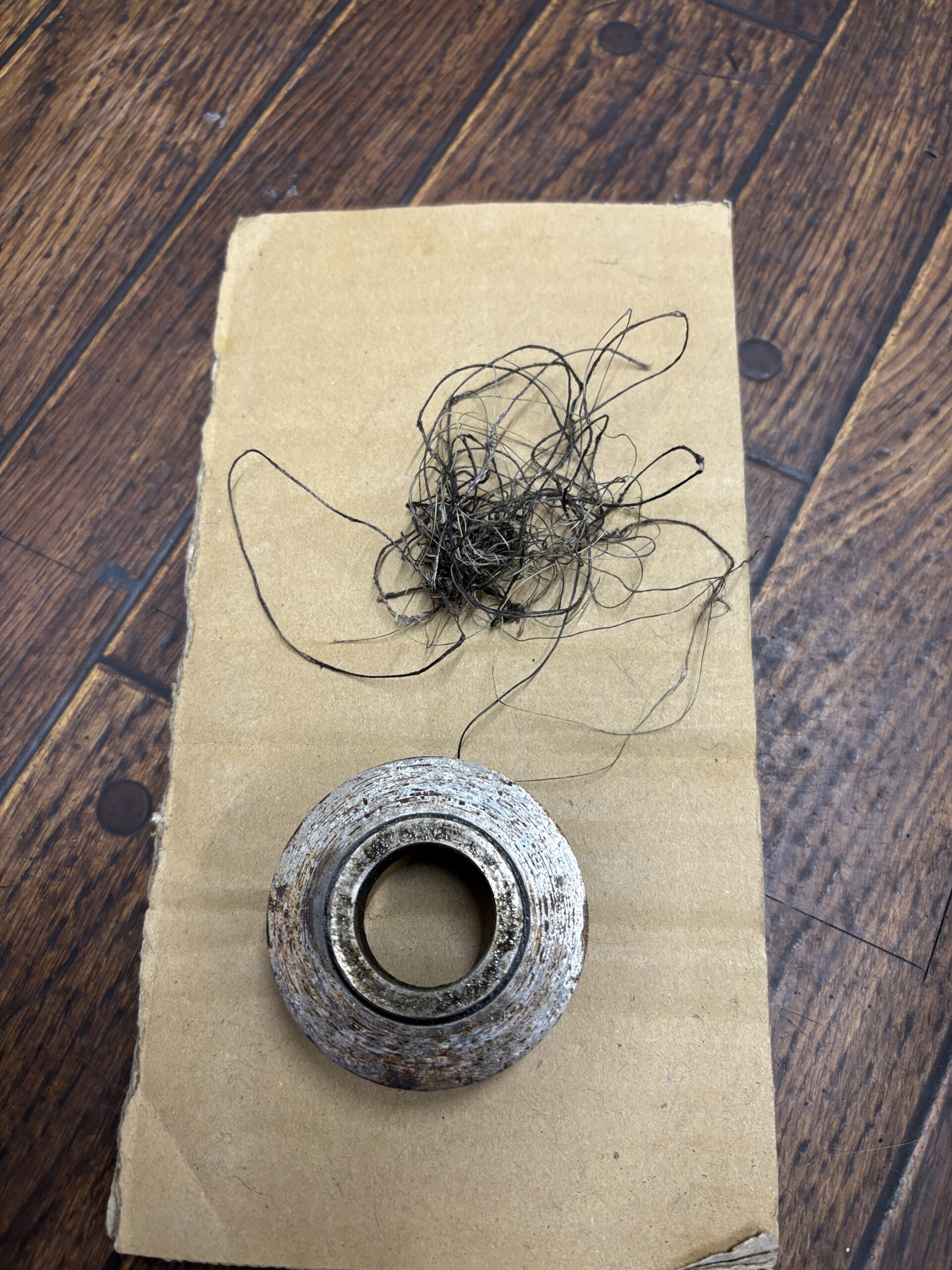 このまま糸を巻き付け続けてしまうと、オイルシールの破損につながることがあります。