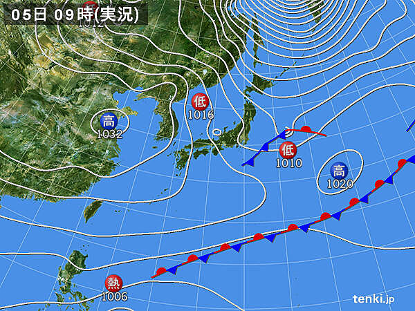 今日の天気図はまさに、等圧線が切り株みたいに渦巻いた冬型の天気。
